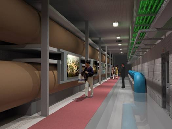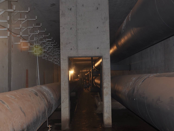 容納的管線較多,包括2根DN1000熱力管道、 1根DN1000給水管道、1根DN900給水管道、弱電管道、220KV、110KV、10KV電力管道及預留的中水管道、空調(diào)管、直飲水管道等。